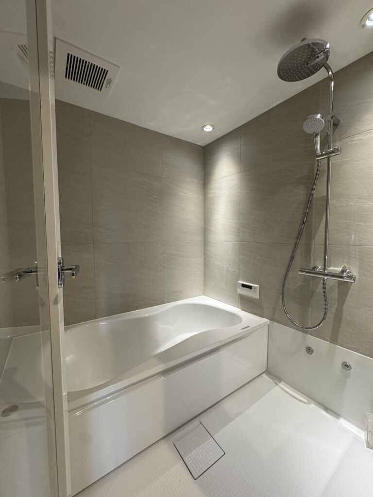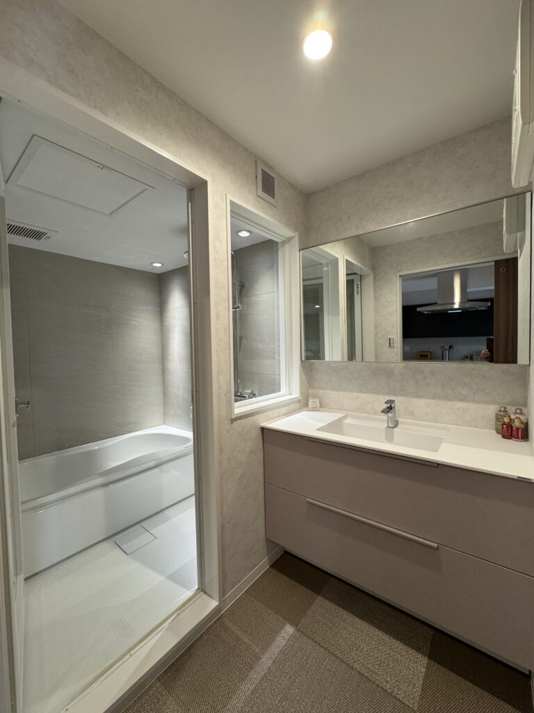 バスルームはホテルライクな仕様と落ち着いた素材でまとめ、