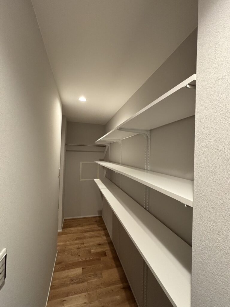 アクセントクロスの裏側には、収納力のあるウォークインシューズクローゼット