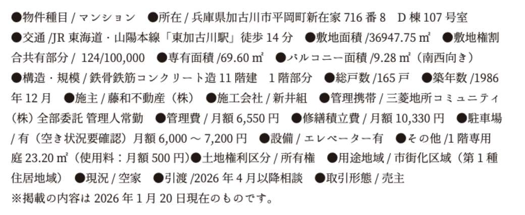 住所:兵庫県加古川市平岡町新在家716番8 東加古川ハイタウンD棟